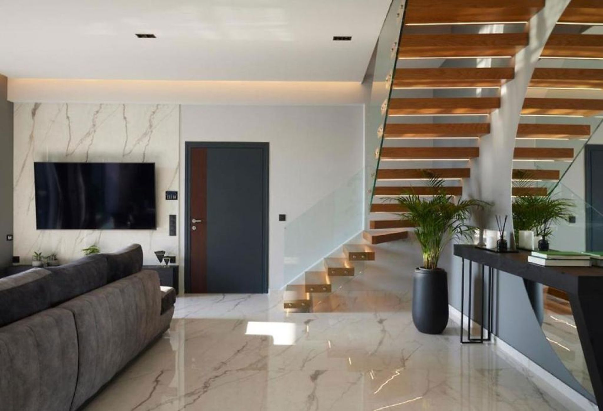 Освен спиращите дъха гледки, вила Anna е архитектурно чудо със своите строги и модерни линии. Самата структура е свидетелство за съвременен дизайн, като осигурява визуално приятен фон дори без фона на панорамата на Егейско море. Независимо дали се взирате в необятната морска шир, или оценявате архитектурния финес на вилата, всеки момент във Вила Анна е празник на красотата и спокойствието. Отдайте се на лукса на това грандиозно убежище и създайте спомени, които ще останат дълго след престоя ви на Халкидики.