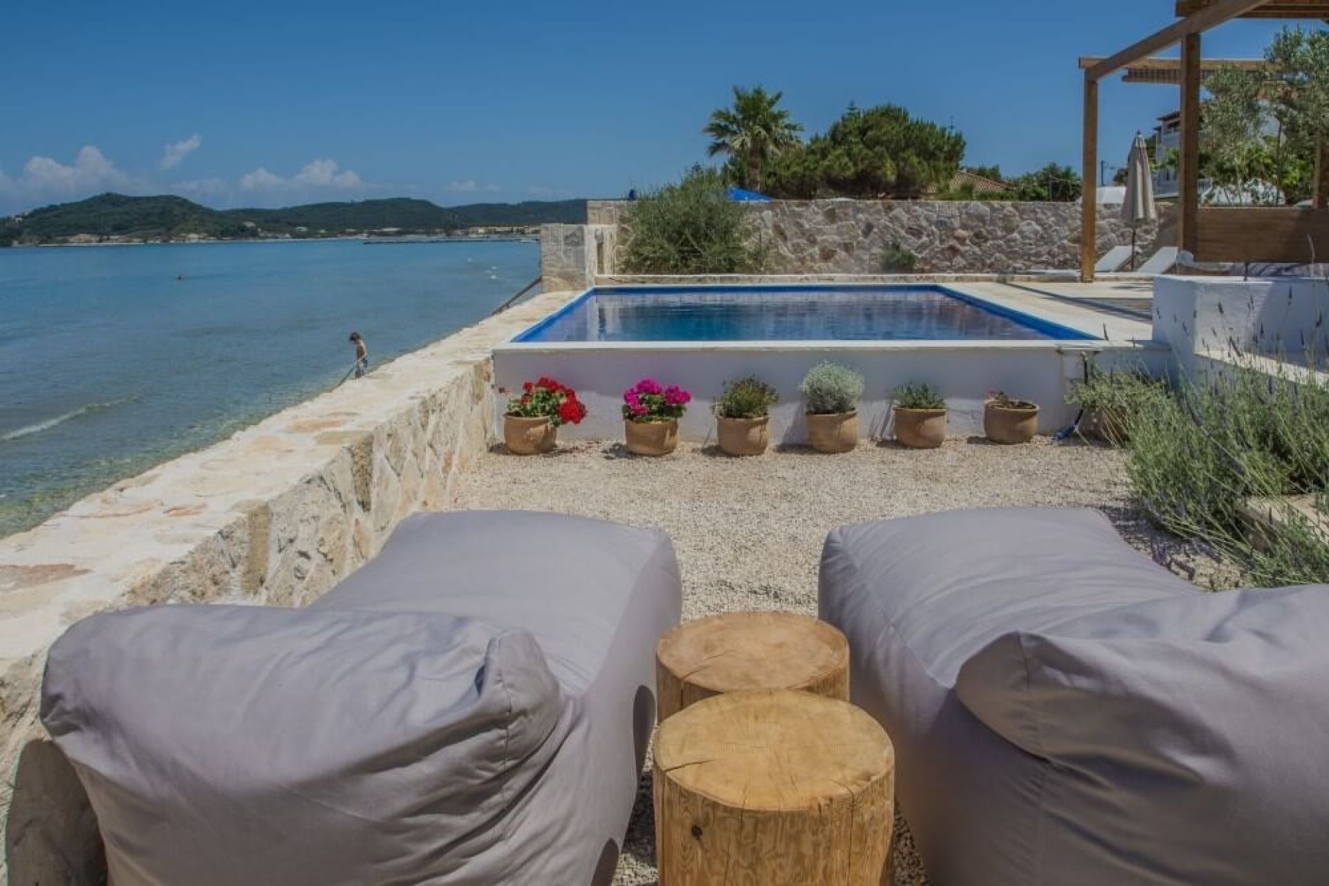 Насладете се на незабравима гледка към Йонийско море от нашата елегантна и модерна, красива вила на брега на морето. Потопете се в слънцето от стилната ни открита зона, където ще намерите мебели и скара.